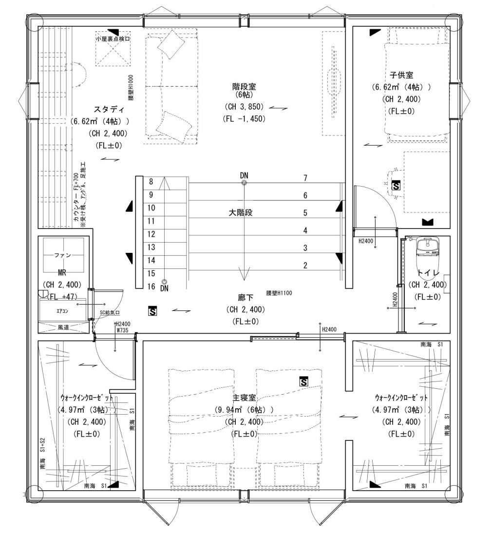 ザ・ビッグまで徒歩9分、村井駅まで徒歩13分。家庭用エアコン1台で夏も冬も家中快適。生活の舞台となる「大階段」を配した住まい。