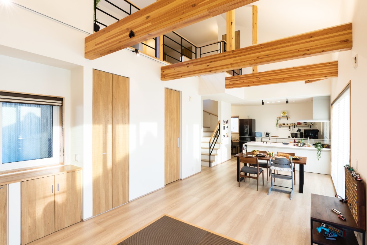 吹き抜けは明るく開放感があり、面積以上の広さを感じさせる効果があります。また、吹き抜けは照明とうまく組み合わせることでさらに魅力的になります。日中は日光をふんだんに取り込み気持ち良いですが、夜は照明を工夫することで雰囲気のある空間へと様変わり。また、室内に暖かさを加えるにはスポットライトを採用するのがおすすめです。光の向きは壁を照らすように設置するとおしゃれです。